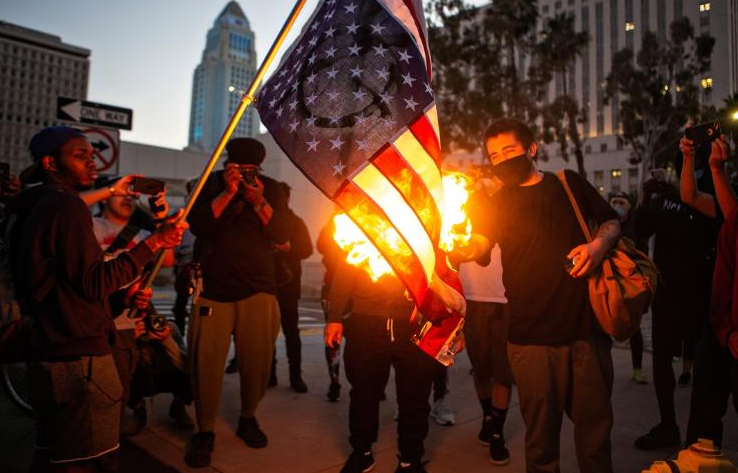 国旗在火光中燃烧,“ICE滚出去!”的怒吼响彻云霄,催泪瓦斯再次成为街景。